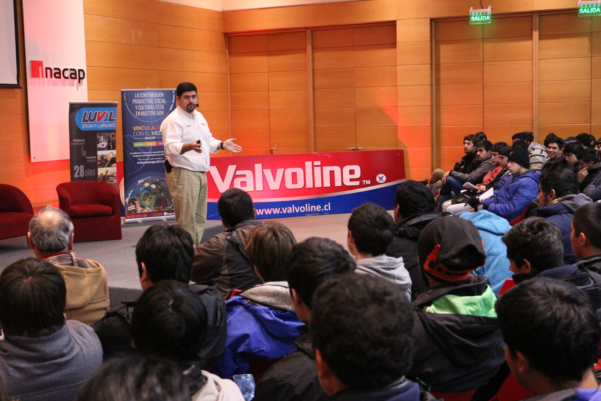 El Coordinador de Carreras del Área Mecánica de INACAP Temuco, Luis Contreras, sostuvo que, “esta vinculación con el sector productivo, en este caso con la empresa Luval es muy importante, porque nuestros alumnos están recibiendo información de parte de un experto internacional en lo que tiene que ver con lubricantes de última generación, y también les entrega seguridad de lo que están aprendiendo y de la información que están recibiendo, que los coloca en la vanguardia de los ejemplos que pueden aplicar más adelante en su profesión”.