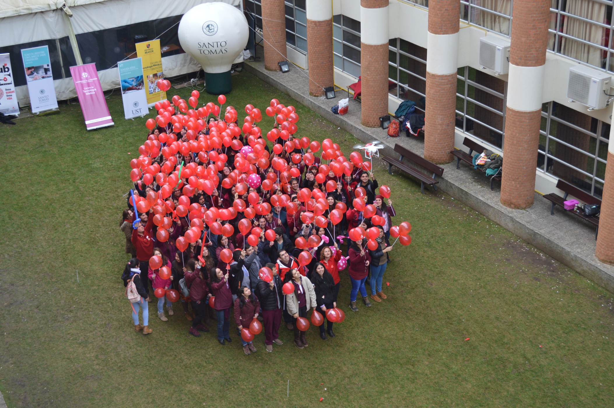 Una verdadera fiesta se vivió en la Universidad Santo Tomás Temuco para celebrar el Día Mundial del Donante de Sangre. Cerca de 70 personas acudieron al evento en el que se promovió entre la comunidad educativa la importancia donación y se fotografió una gran gota humana que se formó en las áreas verdes de la casa de estudios superiores.