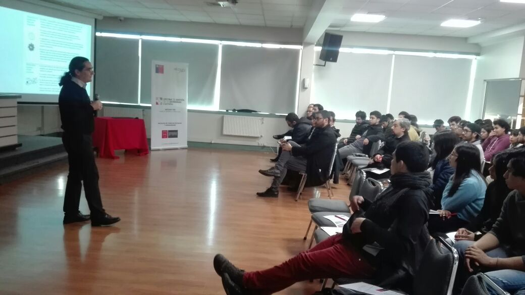 Los expositores fueron Eliseo Huencho, jefe de la División de Edificación Pública del Ministerio Obras Públicas; Raúl Ortiz, director regional de Arquitectura del MOP; Carlos García, docente de la Carrera Arquitectura de la Universidad Autónoma de Chile; y Alex González, arquitecto de la Oficina Gestión de la Diversidad Cultural.