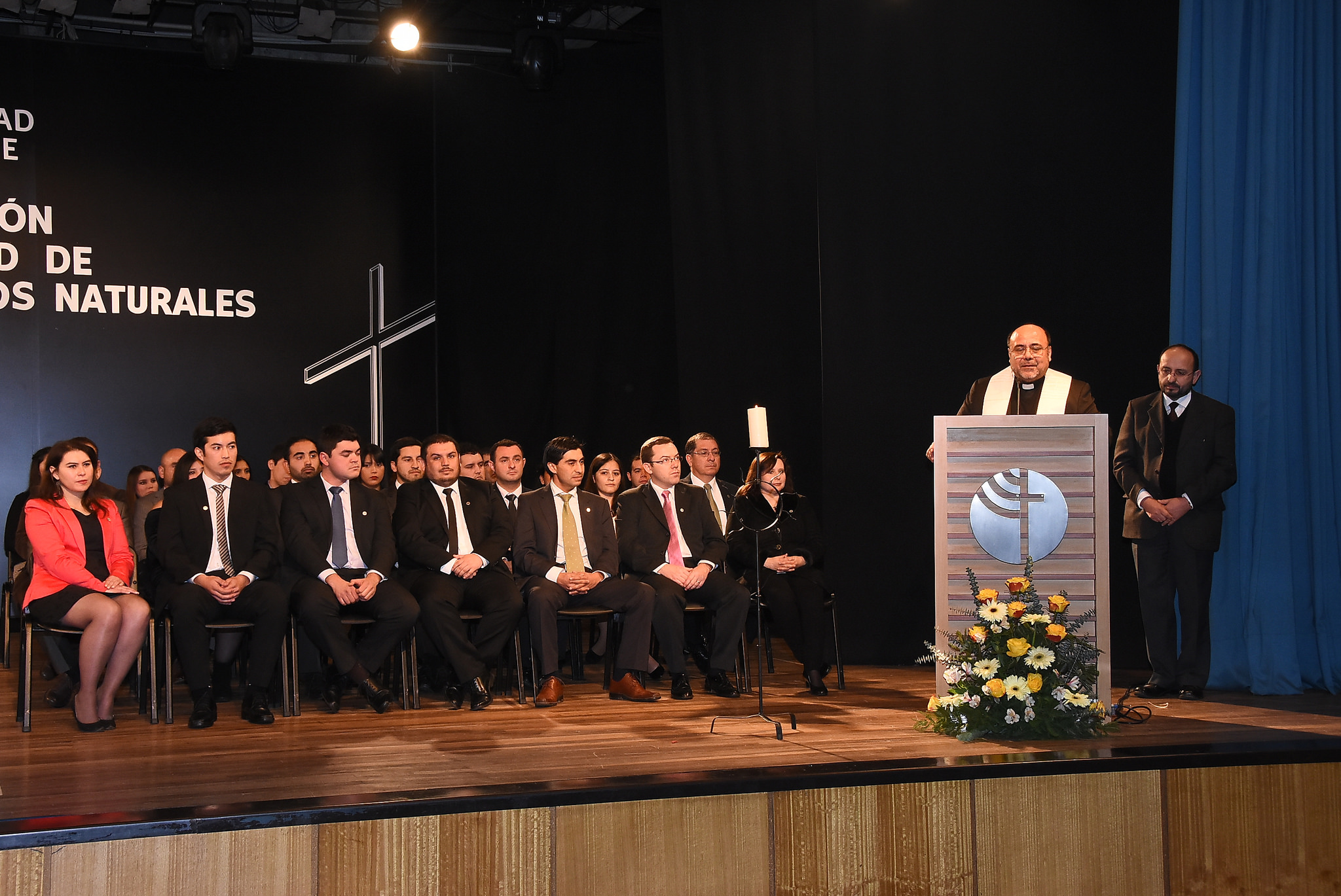 La acción de gracias fue guiada por el capellán de la Facultad, Padre Rino Cáceres acompañado del académico Jaime Solano y el estudiante Sebastián Mardones.