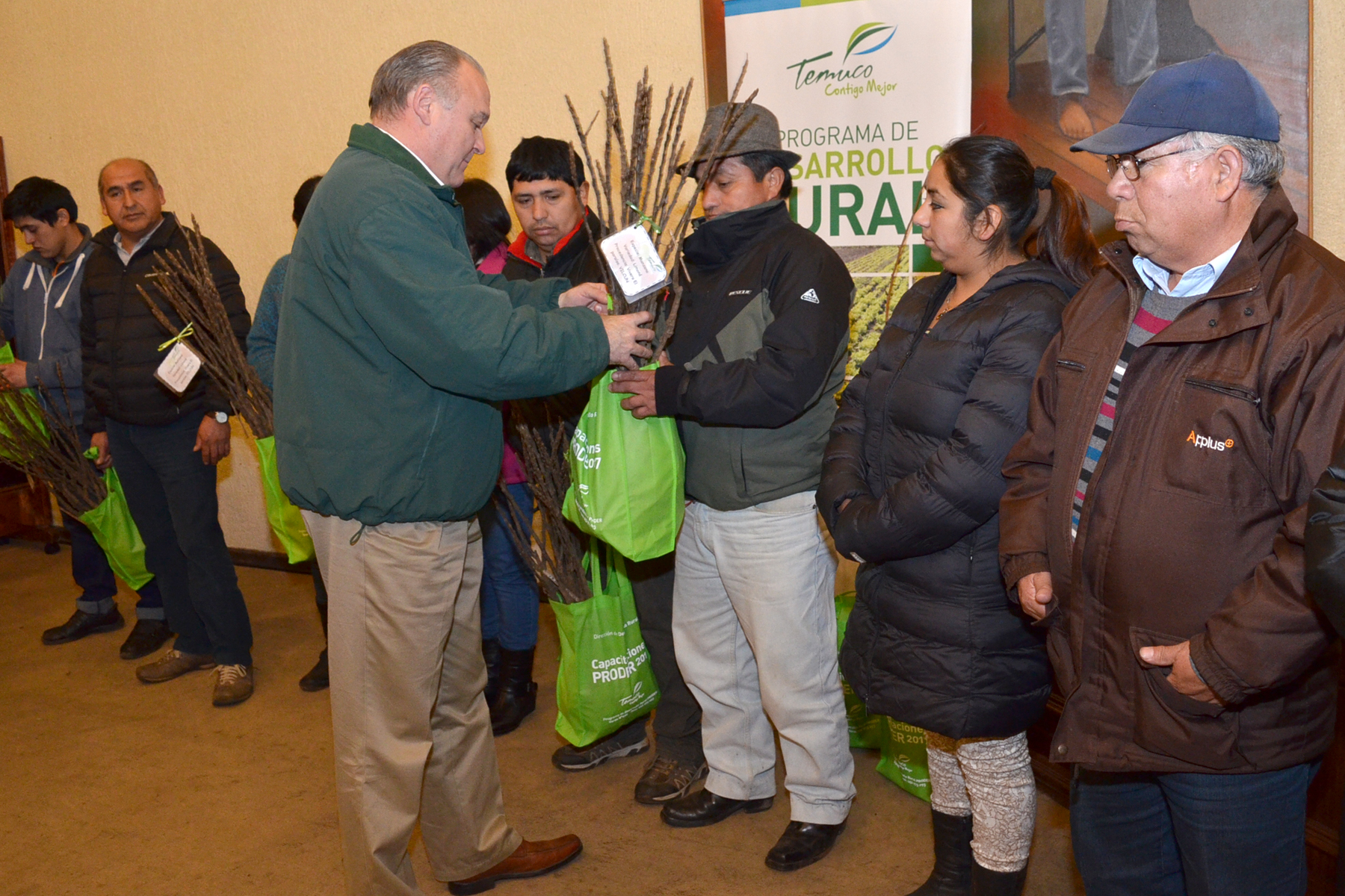 La entrega se realizó en el salón del Concejo Municipal de Temuco, ocasión en la que también se capacitó a los beneficiarios en diversos temas vinculados al área, como poda, injertos y plantación de especies frutales.