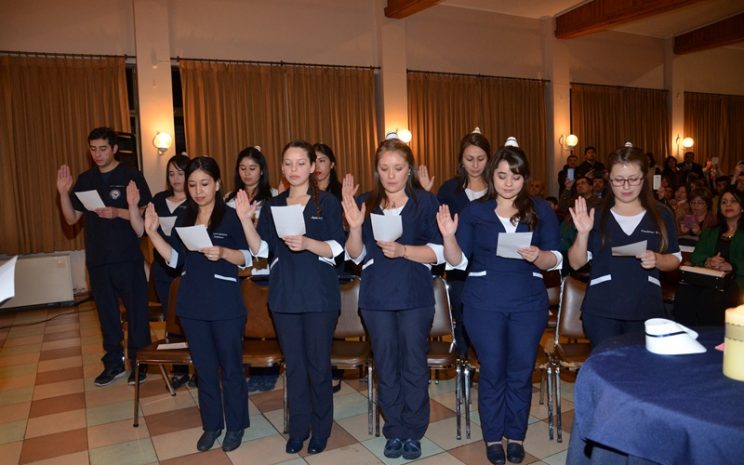 En el acto, los nuevos profesionales recibieron el saludo de la directora de la Escuela de Enfermería de la UST Temuco, Islia de la Guarda, previo al juramento donde manifestaron su compromiso con la profesión y al paciente.